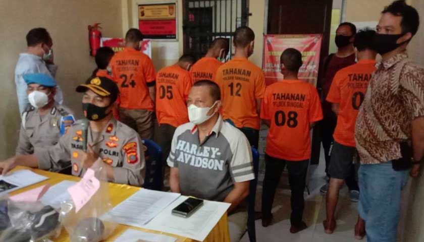 Para tersangka masing-masing Ris (16) Jalan Mesjid Gang Rasmi Km12 Desa Purwodadi, YA seorang wanita (14) warga Jalan Mesjid Gang Duku Desa Purwodadi, AA (25) warga Jalan Pasar Besar Desa Sei Semayang, JR (16) warga Desa Purwodadi, DR (17) warga Desa Purwodadi, Y (15) warga Desa Purwodadi dan DFAH (16) warga Desa Purwodadi Kecamatan Sunggal Deliserdang,