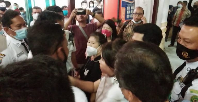 “Apa tenang, tenang? Kalian nggak tahu keq mana rasanya diperlakukan keq gini. Pengadilan harusnya tempat mencari keadilan,” teriak wanita berkemeja putih.