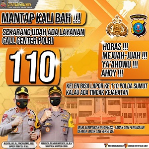 “Disediakannya call center 110 itu bentuk perhatian Polri memberikan pelayanan yang prima kepada masyarakat di Sumatera Utara, Indonesia,” kata Kabid Humas Polda Sumut, Kombes Pol Hadi Wahyudi kepada wartawan, pada Kamis (25/3/2021).