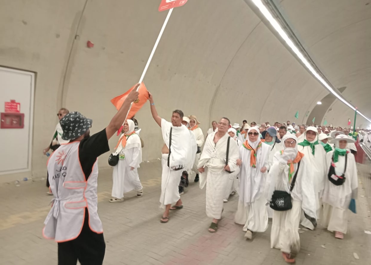 Mina – Jamaah Haji KBIH Pemprovsu yang tergabung dalam Kloter 14 KNO Alhamdulillah dengan lancar melontar Jamratul Aqobah.