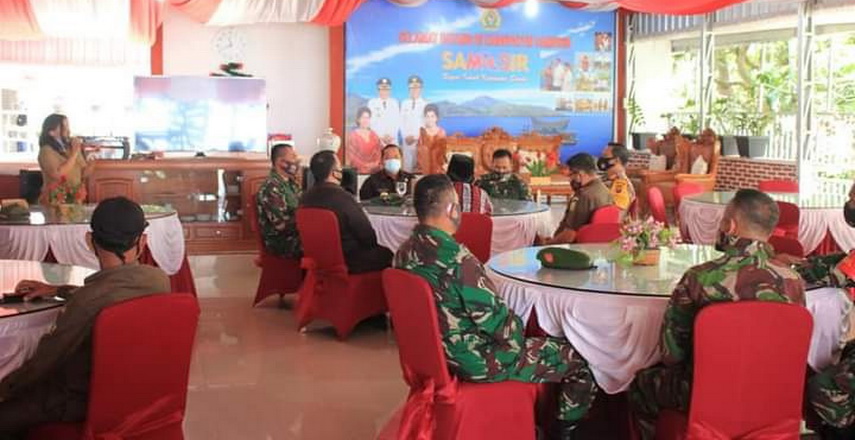 SAMOSIR – Dalam rangkaian kunker di Kabupaten Samosir, Danrem Kawal Samudra (Danrem 023/KS) Kolonel Inf Febriel Buyung Sikumbang SH MM melakukan ramah tamah dengan Bupati Samosir Drs Rapidin Simbolon MM. Acara digelar di Rumah Dinas Bupati Samosir, Pangururan, Senin (31/8/2020).