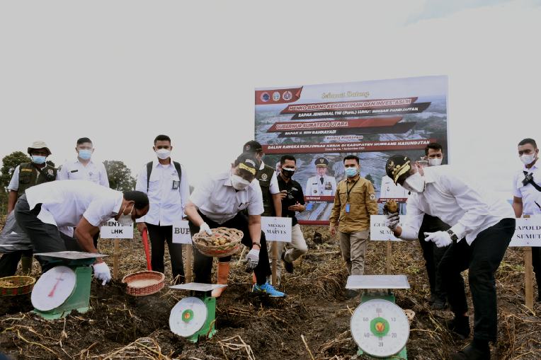 Luhut Binsar Pandjaita, bersama Gubernur Sumut Edy Rahmayadi, Wamen LHK Alue Dohong, Kapolda Sumut Panca Putra Simanjuntak dan Bupati Humbahas Dosmar Banjarnahor sempat memanen kentang hasil demplot PT Indofood. Hasilnya cukup memuaskan dengan berat rata-rata 1-2 kg/tanaman.