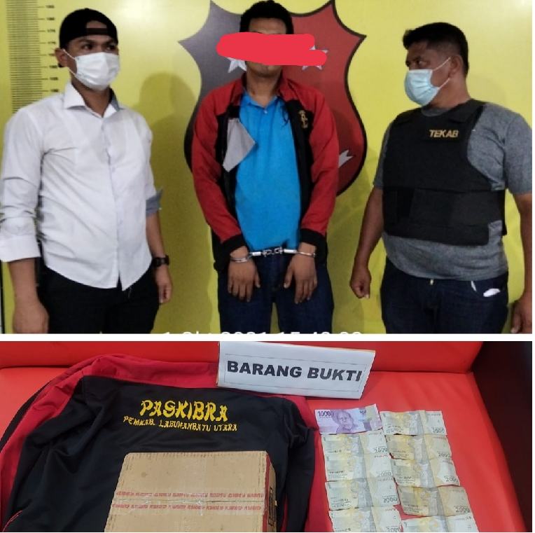 Dari pelaku Tim, mengamankan barang bukti berupa 1 buah Jaket bertuliskan Paskibraka, 1 kotak karton bekas untuk tempat uang dan uang sejumlah Rp30.000 dan pelaku dikenakan pasal KUHP 504. Okemedan.com – Jul