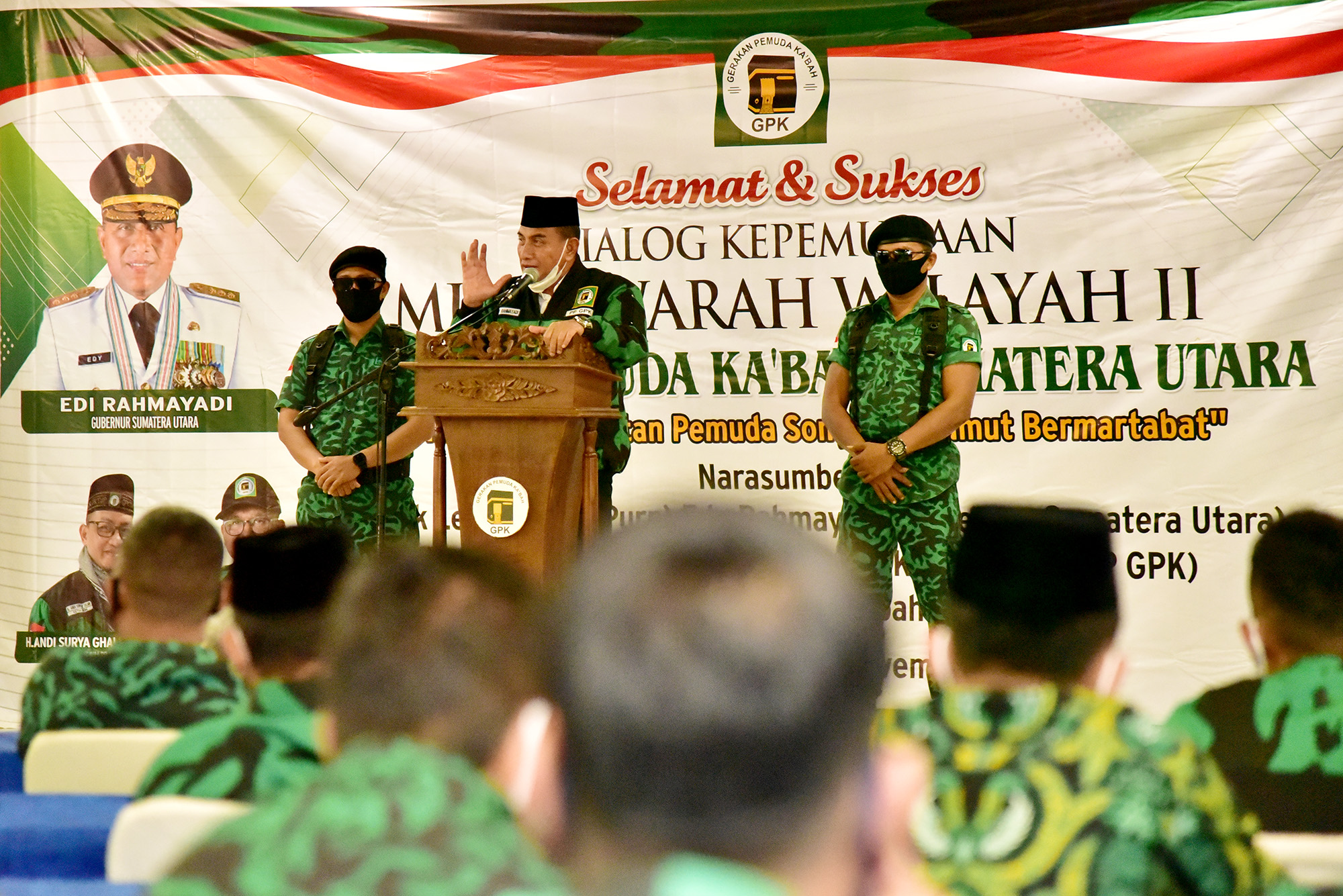 SUMUT – Gubernur Sumatera Utara Sumut (Gubsu) Edy Rahmayadi menyampaikan sambutan sekaligus refleksi dalam acara Musyawarah Wilayah (Muswil) II/2020 Gerakan Pemuda Ka’bah atau GPK Sumut di Asrama Haji Medan, Minggu (29/11/2020).