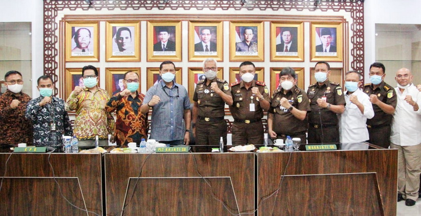 SUMUT – Pelaksana Tugas (Plt) Kajati Sumatera Utara (Sumut) Aditia Warman, pada Senin (30/11/2020), menerima kunjungan Tim Korwil 1 KPK (Komisi Pemberantasan Korupsi). Pertemuan berlanjut dengan rapat koordinasi atau rakor berantas korupsi bertempat di Ruang Rapat Kejati Sumut, Jalan AH Nasution, Medan. Rapat koordinasi ini guna memperkuat sinergisitas dalam pemberantasan tindak pidana korupsi