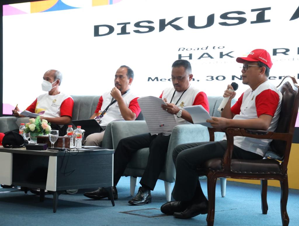 POSKOTASUMATERA.COM-MEDAN-Guna memperkuat partisipasi publik memberantas korupsi, Komisi Pemberantasan Korupsi (KPK) menggelar Diskusi Media bersama para jurnalis se-Provinsi Sumatera Utara (Sumut) di Kantor Dinas Pemuda dan Olahraga Sumut, Kota Medan, Rabu (30/11). Kegiatan ini merupakan bagian dari rangkaian Road to Hakordia (Hari Antikorupsi Sedunia) yang digelar di Sumut pada 29-30 November 2022.