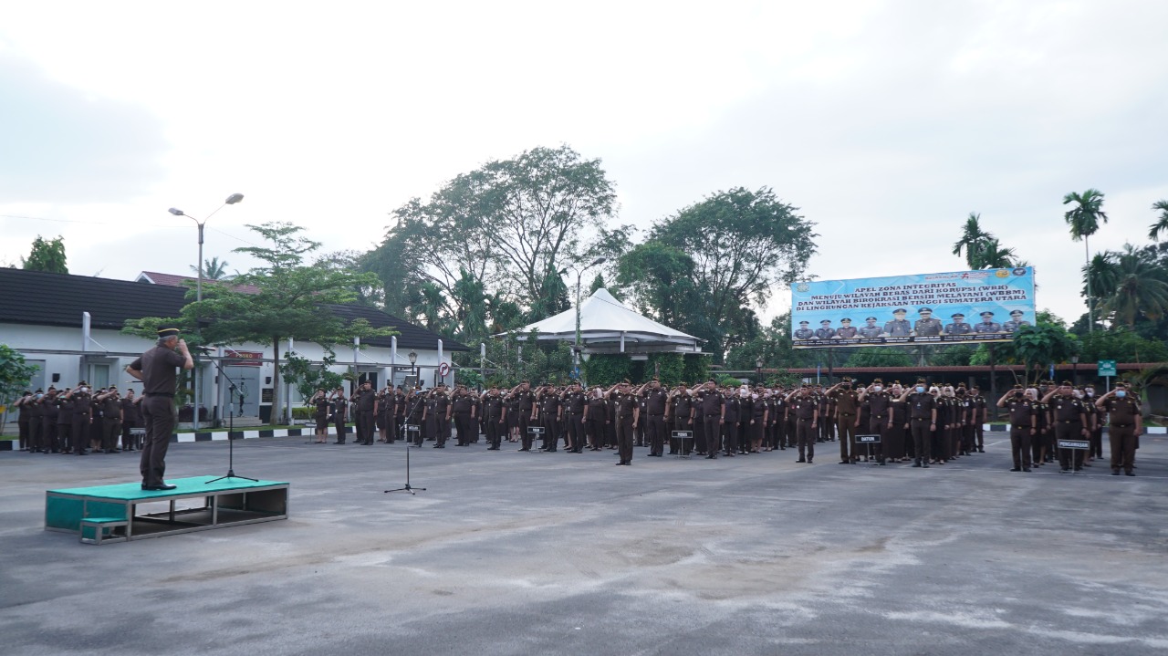 Apel pagi diikuti seluruh jajaran mulai dari Wakajati Sumut Asnawi, para Asisten, Koordinator, Kabag TU, para Kasi, pegawai, honorer dan security.