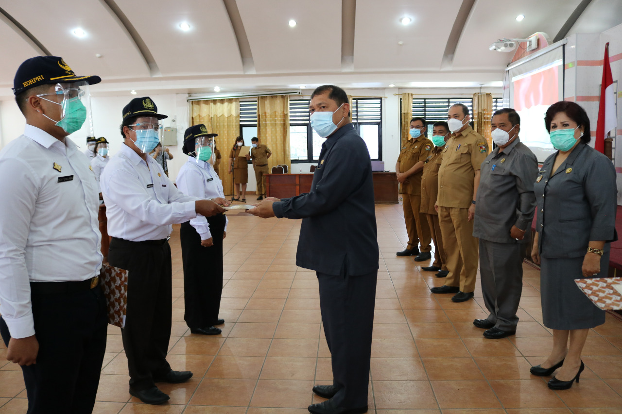 Acara Penyerahan SK tersebut dilaksanakan dengan menerapkan dan mematuhi protokol kesehatan covid 19 dengan memaki masker, menjaga jarak dan memakai hand sanitizer.