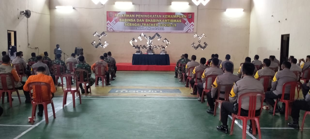 LAMPUNG UTARA – realitasonline.co.id | Kapolres Lampung Utara AKBP Bambang Yudho M SIK.MSi membuka pelatihan peningkatan kemampuan sebagai Tracer Covid – 19 bertempat di Gedung Wira Satya (GWS) polres Lampung Utara pada Senin (1/3/2021).
