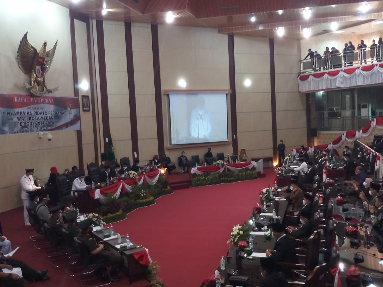 Mengawali rapat paripurna, Ketua DPRD Medan menyampaikan, pidato perdana harus dilakukan Kepala daerah sebelum memulai kinerjanya setelah resmi dilantik. Hal itu menindaklanjuti surat Pempropsu yang ditandatangi Sekda Sabrina tertanggal 19 Pebruari 2021 bernomor 130/289