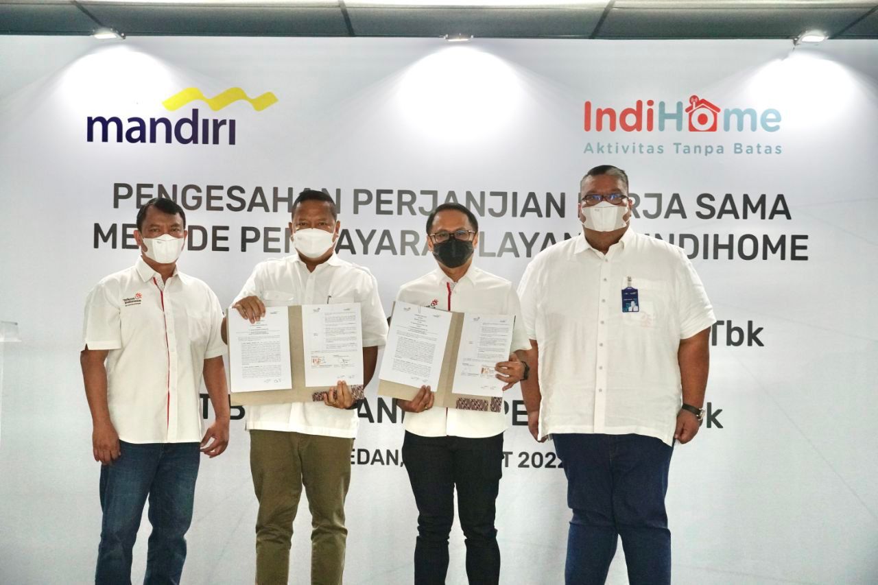 MEDAN – Dalam rangka memberikan pelayanan terbaik untuk masyarakat, Telkom Regional 1 menjalin kolaborasi dengan Bank Mandiri untuk memudahkan pelanggan membayar tagihan IndiHome.