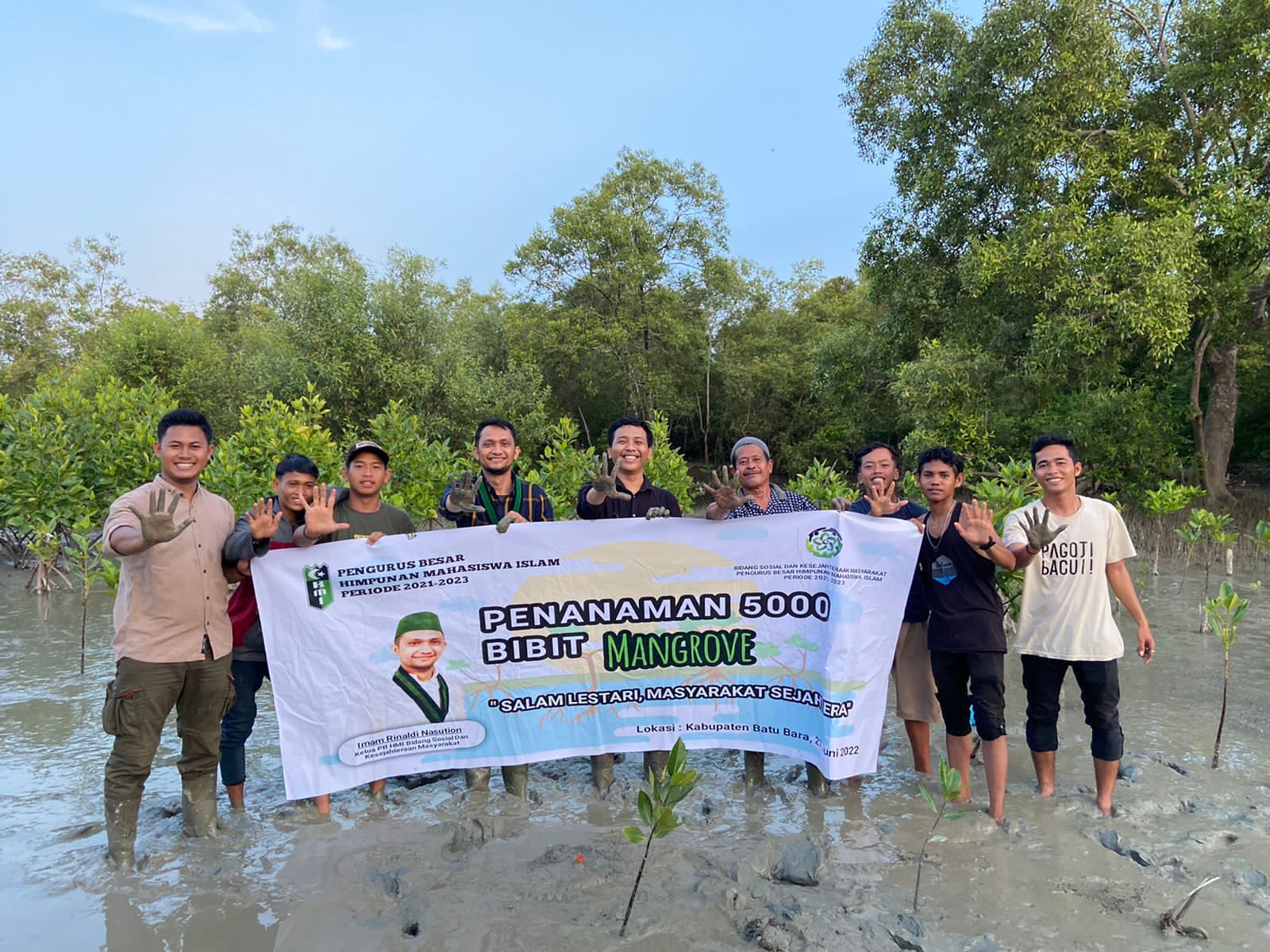 Penanaman 5000 bibit mangrove ini dilakukan secara simbolis, yang juga dihadiri oleh Mahasiswa Daerah Asal Kab. Batu Bara IKATAN MAHASISWA BATU BARA, dan pemuda-pemuda kelompok tani cinta mangrove.