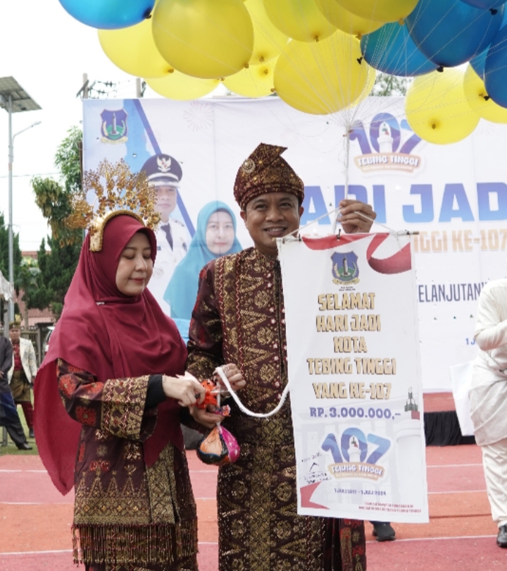 Tebing Tinggi, MIMBAR – Suasana semarak dan penuh kemeriahan namun tak menghilangkan unsur sejarahnya, mewarnai peringatan Hari Jadi Kota Tebing Tinggi Ke-107 tahun, d halaman gedung Balai Kota Jalan Sutomo Kota setempat, Senin (1/7/2024).
