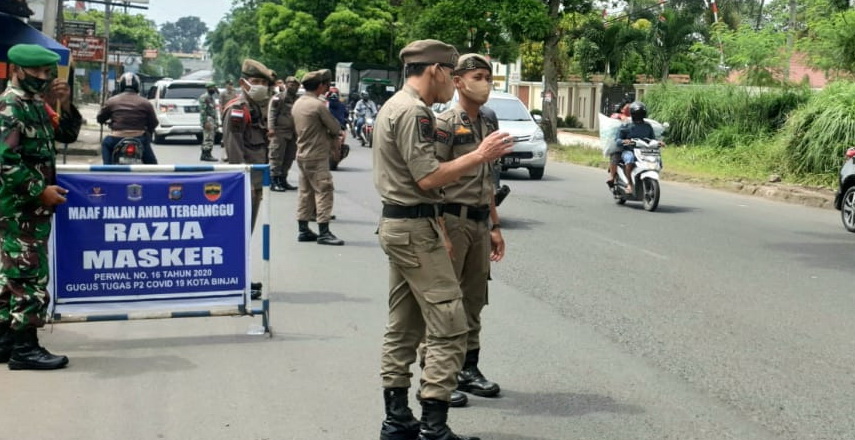 BINJAI– Satgas Pengendalian Pendisplinan Protokol Kesehatan Medan-Binjai-Deli Serdang (Mebidang) kembali melakukan razia masker, Selasa (1/9/2020).
