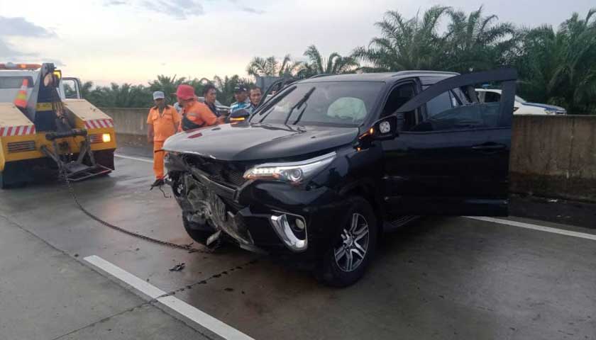 Hilang Kendali, Fortuner Tabrak Pembatas Jalan Tol Tebingtinggi-Kualanamu