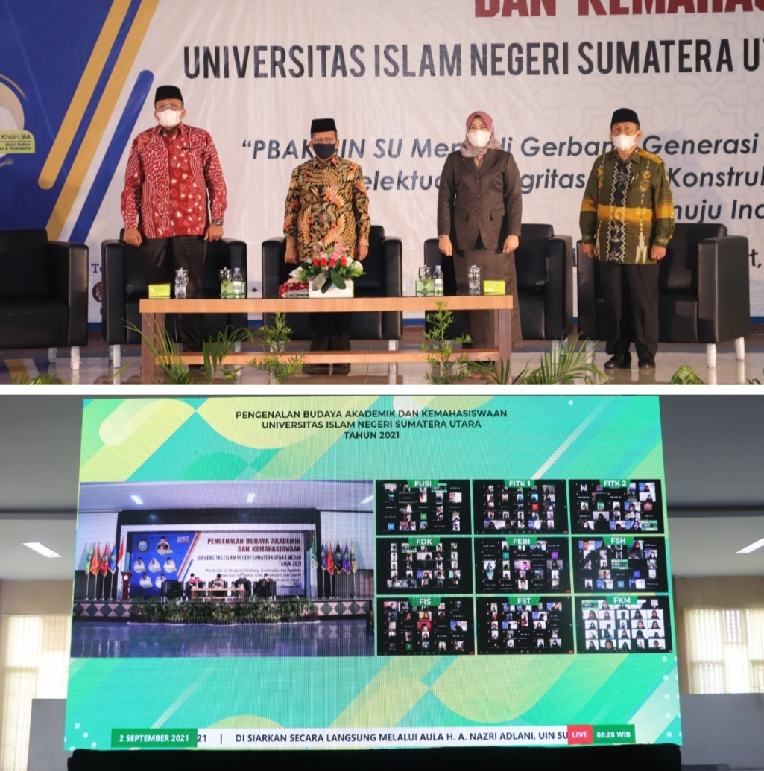 “Nilai-nilai pengembangan ilmu pengetahuan yang saat ini dilakukan dengan perkuliahan baik secara daring dan luring, pembentukan moral akademik dan lainnya untuk mewujudkan atmosfir kampus yang integratif. Hal-hal tersebut perlu diinternalisasikan bagi mahasiswa baru UIN Sumut,” kata Prof Syahrin pada acara pembukaan Pengenalan Budaya Akademik dan Kemahasiswaan (PBAK) bagi 5.575 mahasiswa baru UIN Sumut 2021 yang digelar secara virtual melalui aplikasi Zoom Meeting dan kanal Youtube dari Aula utama kampus II Jalan Willem Iskander Medan, Kamis (2/9/2021).