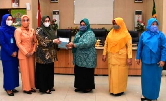 Komitmen itu antara lain diimplementasikan melakukan aksi bagi-bagi masker sebagai upaya pencegahan Corona Virus Disease 2019 (Covid-19) sekaligus bersilaturahmi dengan pengurus PKK Kabupaten Sergai.