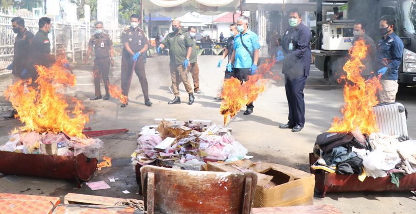 Antara lain, minuman beralkohol dan rokok (perkara kepabeanan dan cukai)/ Lalu, obat-obatan, jamu, kosmetik dan lainnya (terkait BPOM). Kemudian, koin, kalkulator, buku tulis dan lainnya (perjudian). Pisau, parang (senjata tajam), screen shoot percakapan (ITE), uang palsu, pakaian, celana dalam (perkara perlindungan anak).