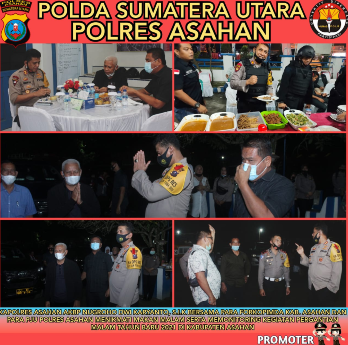 Menurut Kapolres Asahan, bahwa, kegiatan monitoring ke Pos-Pos Pengamanan tempat Ibadah Gereja dan Pergantian Tahun Baru 2021 dilaksanakan bersama unsur Forkopimda Kabupaten Asahan.