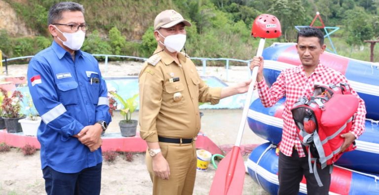 TAPUT – Bupati Taput (Tapanuli Utara) Drs Nikson Nababan MSi menghadiri penyerahan perahu arung jeram kepada pengurus FAJI (Federasi Arung Jeram Indonesia). Bantuan itu sendiri berasa dari CSR PT. SOL.