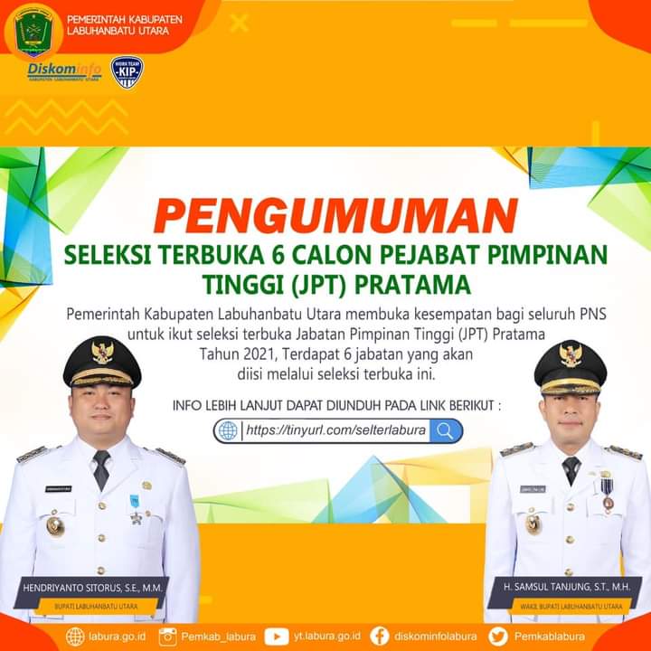 Seleksi terbuka ini sesuai dengan surat Pengumuman Nomor: 800/004/BKD/2021. Pada seleksi kali ini, terdapat enam jabatan yang dibuka di Lingkungan Pemkab Labuhanbatu Utara (Labura).