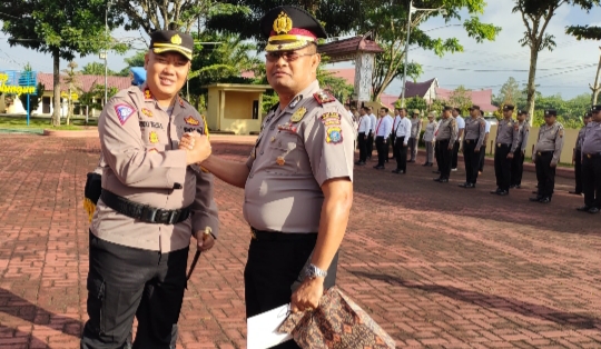 Upacara Pelepasan Purnabakti yang dipimpin Kapolres AKBP Choky Sentosa Meliala, S.I.K., S.H., M.H., di Lapangan Apel Mako Polres Simalungun Senin (3/6/2024)
