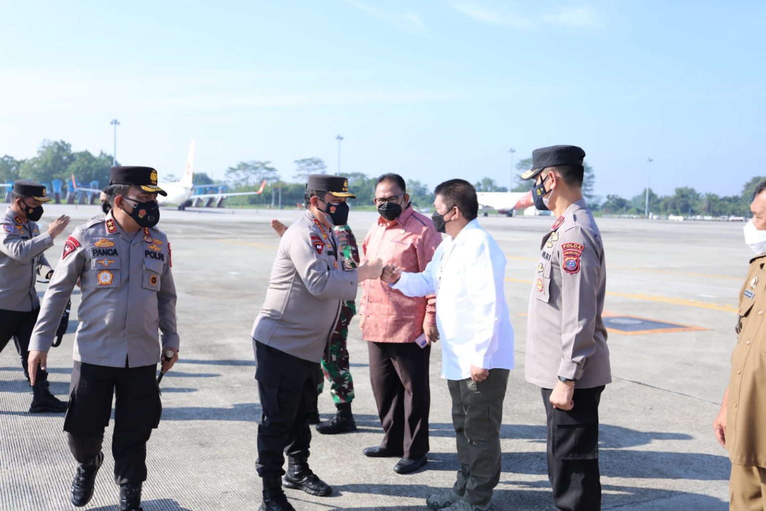 MEDAN – Kapolda Sumut, Irjen Pol RZ Panca Putra Simanjuntak, menyambut kedatangan Waka Polri Komjen Pol Gatot Eddy Pramono di Bandara Kualanamu, Kabupaten Deliserdang, pada Selasa (3/8/2021) pagi.