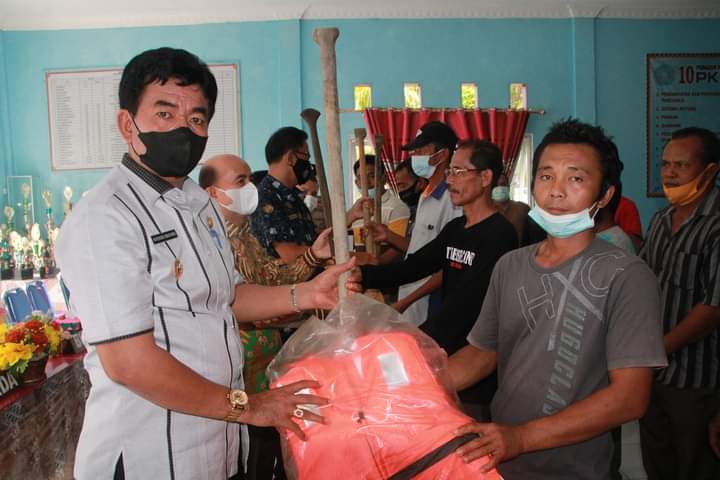 “Hari ini kami menyerahkan bantuan kapal tipe 3GT, kapal 0,5 GT, alat jaring tangkap sebanyak 25 set, alat fish finder sebanyak 7 unit dan juga kartu pelaku usaha kelautan dan perikanan (kartu kusuka)” ujar Bupati dalam arahannya.