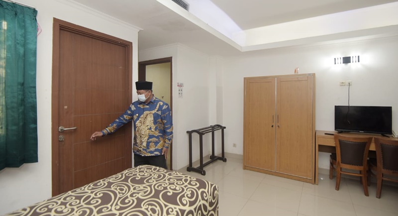 “Kapasitas 210 tempat tidur dari 105 kamar. Penyesuaian setiap kamar terdiri dua bed, juga ada cadangan (ekstra bed), ada tv, kulkas, kamar mandi di dalam, dan sudah steril, termasuk pendingin ruangan,” katanya.