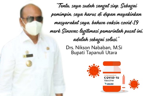 TAPANULI UTARA – Bupati Tapanuli Utara Drs. Nikson Nababan, M.Si bersama Forkopimda dan mewakili tokoh agama sebagai penerima perdana vaksin Covid-19 akan dilaksanakan di Sopo Rakyat Rumah Dinas Bupati Taput, besok (Jumat 05/02/2021).