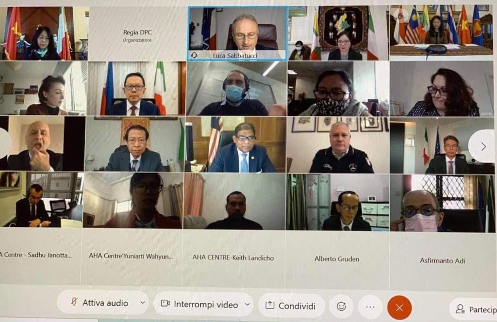 ​​Roma, Italia -Dalam memperkuat kerja sama penanggungan bencana alam antara Italia dan negara ASEAN, Pemerintah Italia menyelenggarakan pelatihan Online Training Course on Civil Protection yang diikuti peserta dari negara-negara ASEAN, dan ASEAN Coordinating Center for Humanitarian Assiatance and Emergency Responses (AHA) Center (03/02/2021).