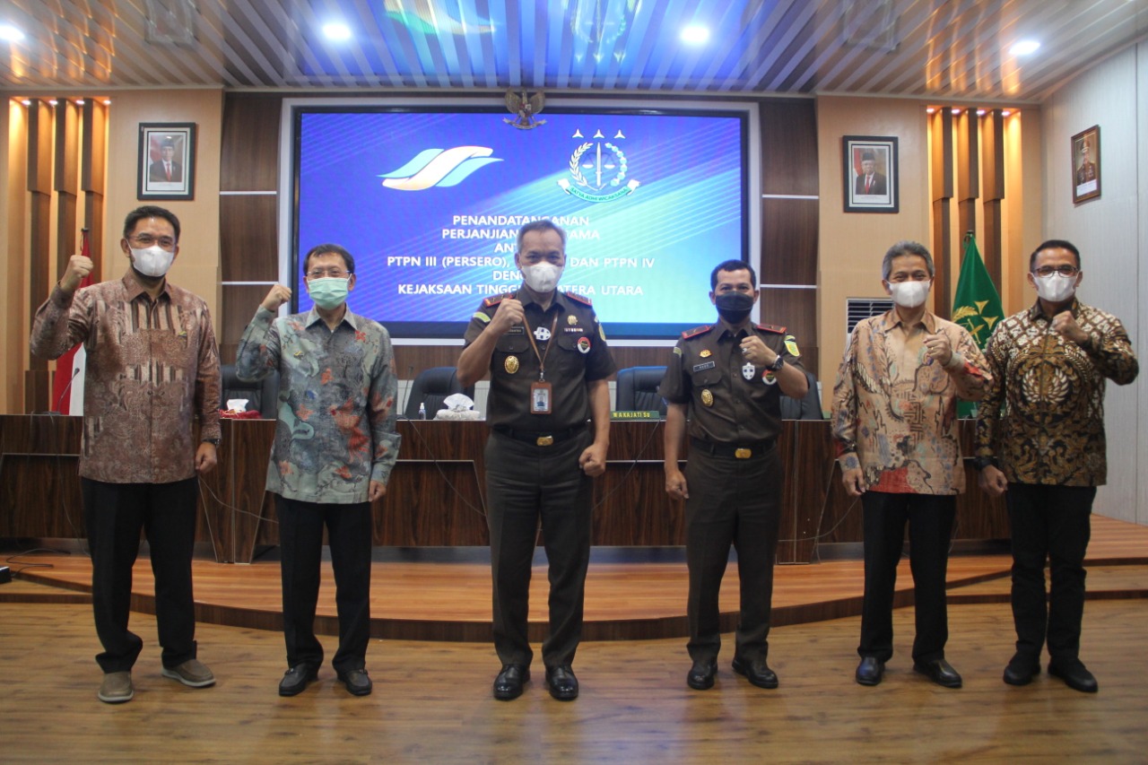 Penandatanganan kerjasama antara Kejati Sumut dilaksanakan oleh Kajati Sumut IBN Wiswantanu dengan Direktur PTPN II Irwan Perangin-Angin, Direktur SDM PTPN III Seger Budiardjo dan Direktur PTPN IV Sucipto Prayitno.