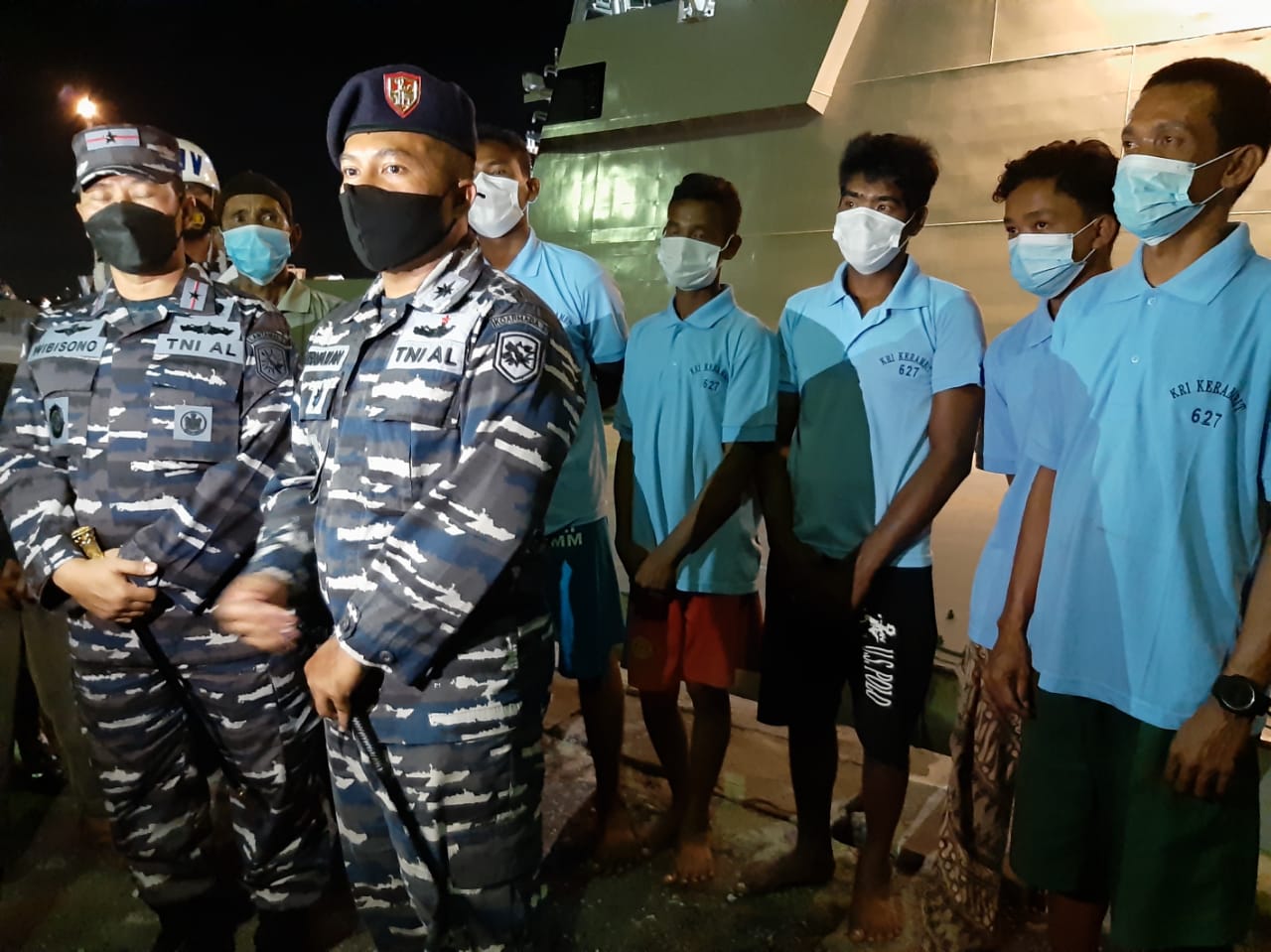 Komandan Pangkalan Utama TNI Angkatan Laut I (Danlantamal I) Laksamana Pertama TNI Achmad Wibisono menyerahkan langsung 5 orang ABK Kapal Ikan Indonesia yang mengalami musibah kecelakaan laut ini kepada pihak keluarga yang bersangkutan bertempat di Dermaga Lantamal I Belawan dalam keadaan sehat