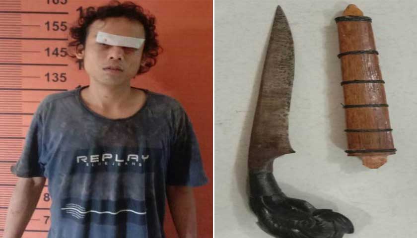 Selain petugas kepolisian juga mengamankan barang bukti dari tersangka 1 tas hitam berisikan pakaian, 1 kunci latter T, dan 1 pisau jenis badik.