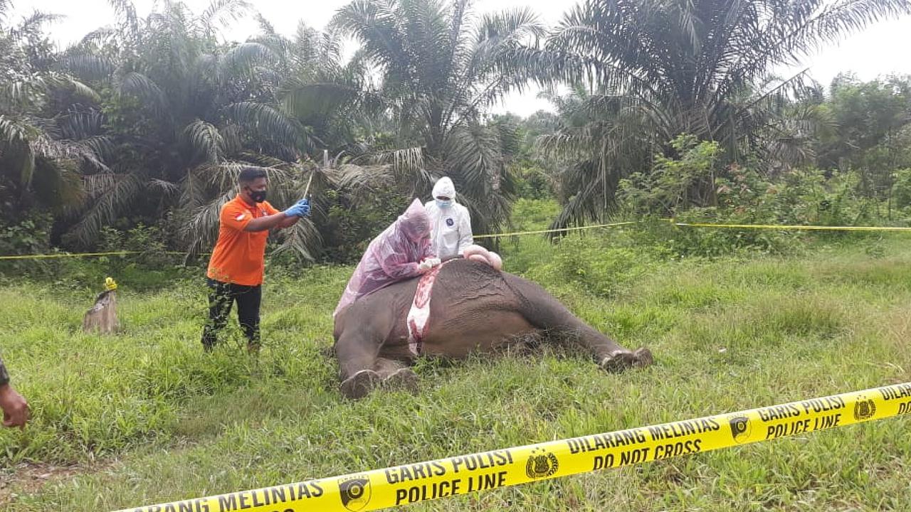 Sebelumnya, bangkai gajah Sumatera berkelamin jantan ditemukan mati tanpa kepala dalam area PT Bumi Flora di Desa Jambo Reuhat, Banda Alam, Aceh Timur, Minggu (11/7/2021).