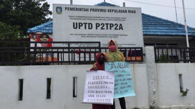 TANJUNGPINANG – Ayah lumpuh ditangkap dalam kasus pemerkosaan. Namun seorang ibu dan anak perempuanya melakukan aksi di kantor unit pelaksana teknis daerah (UPTD) pusat pelayanan terpadu perlindungan perempuan dan anak (P2TP2A) Provinsi Kepri, di Tanjungpinang, Kamis (3/9/2020). Apa pasal?