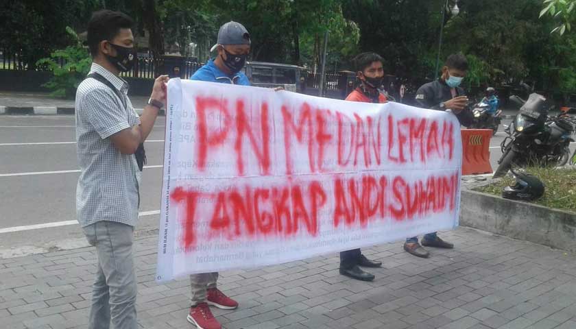 Namun sayangnya, tidak satu pun perwakilan dari Pengadilan Tipikor pada PN Medan menerima massa demonstran karena berketepatan sebagian hakim sedang bekerja dari rumah masing-masing alias Work From Home (WFH).