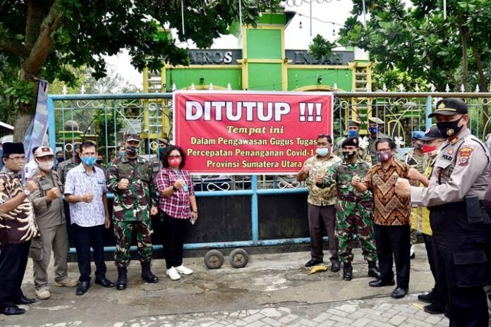 MEDAN – Gugus Tugas Percepatan Penanganan (GTPP) Covid-19 Sumatera Utara (Sumut) bersama GTPP Covid-19 Deli Serdang secara resmi menutup sementara aktivitas wahana hiburan Hairos Indah/Hairos Water Park di Jalan Jamin Ginting, Kabupaten Deli Serdang, Jumat (2/10).