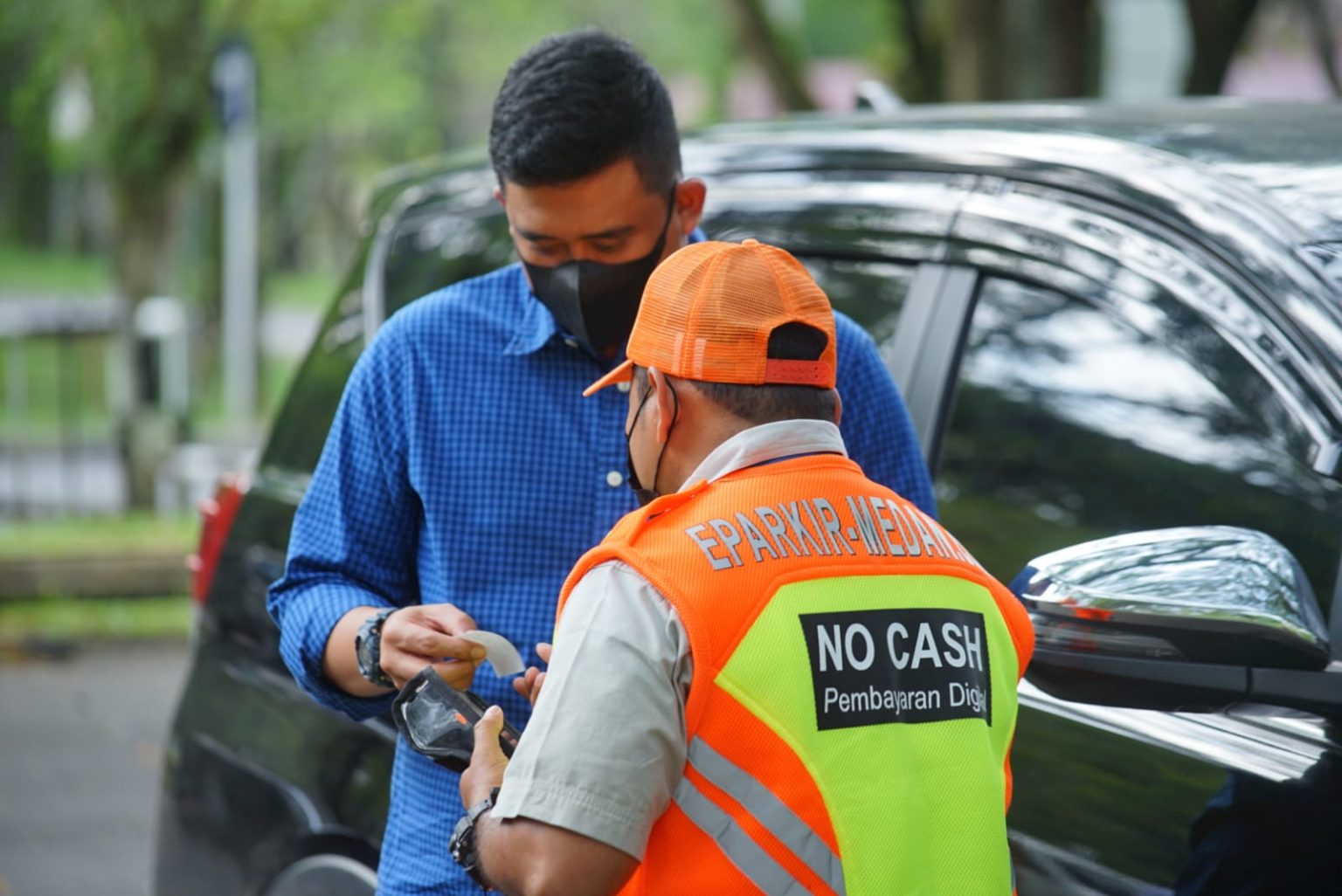 E-Parking di Kota Medan seyogyanya telah mulai berjalan beberapa bulan lalu. Ada sejumlah titik parkir di Medan yang telah mengadopsi teknologi cashless alias pembayaran non tunai.