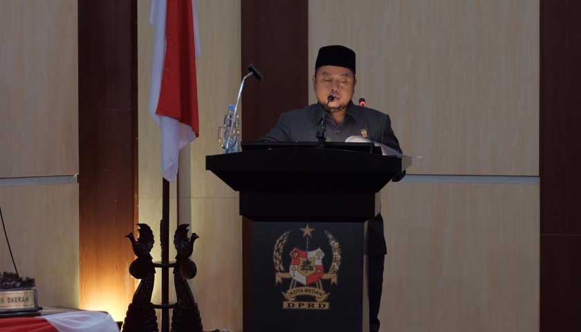 Hal itu disampaikannya saat membacakan pemandangan umum fraksinya terhadap Ranperda Kota Medan Rancangan Anggaran Pendapatan dan Belanja (APBD) Kota Medan Tahun Anggaran 2021, Selasa (3/11). “Akhir tahun 2020, sebagian besar wilayah Indonesia akan melaksanakan Pilkada Serentak, tingkat provinsi maupun kabupaten/kota untuk pertama kali pada masa pandemic covid 2019, dan kita berharap semoga pelaksanaan pilkada serentak ini aman, tertib dan terkendali,” imbuhnya.