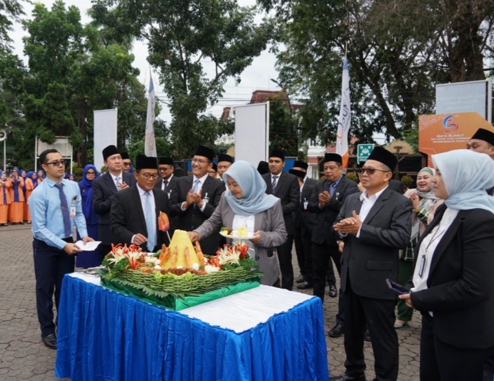 Usai upacara, acara dilanjutkan dengan pemotongan tumpeng sebagai simbol rasa syukur dan harapan baru.