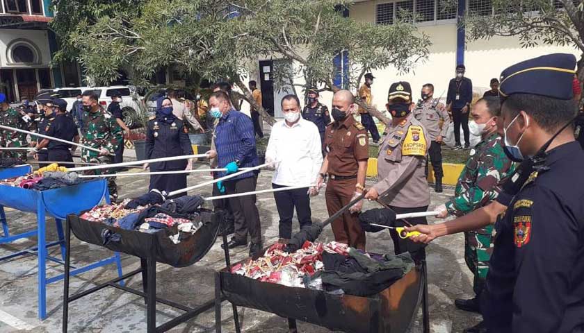 Barang ilegal yang dimusnahkan berupa sebanyak 2.532.000 batang rokok, pakaian bekas, tas bekas, sepatu bekas. Selanjutnya, 601 kemasan obat-obatan, alat kontrasepsi, kosmetik, pakaian.