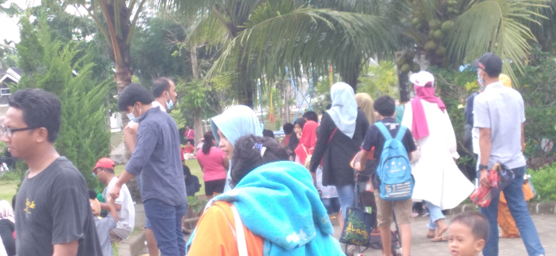 Selain itu, kerumunan yang besar juga terjadi di Water Park yang menyediakan wahana perosotan dan air jatuh yang amat mengkhawatirkan penularan virus berukuran mikro ini dari sentuhan maupun udara.