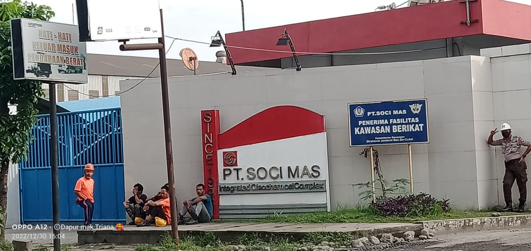 Dalam bincang dengan media, Security mengatakan, pekerja di PT Soci Mas ada yang karyawan tetap dan ada dari 2 perusahaan outsorsing yakni PT Srikandi Inti Lestari dan untuk supir dan security dari perusahaan lain.