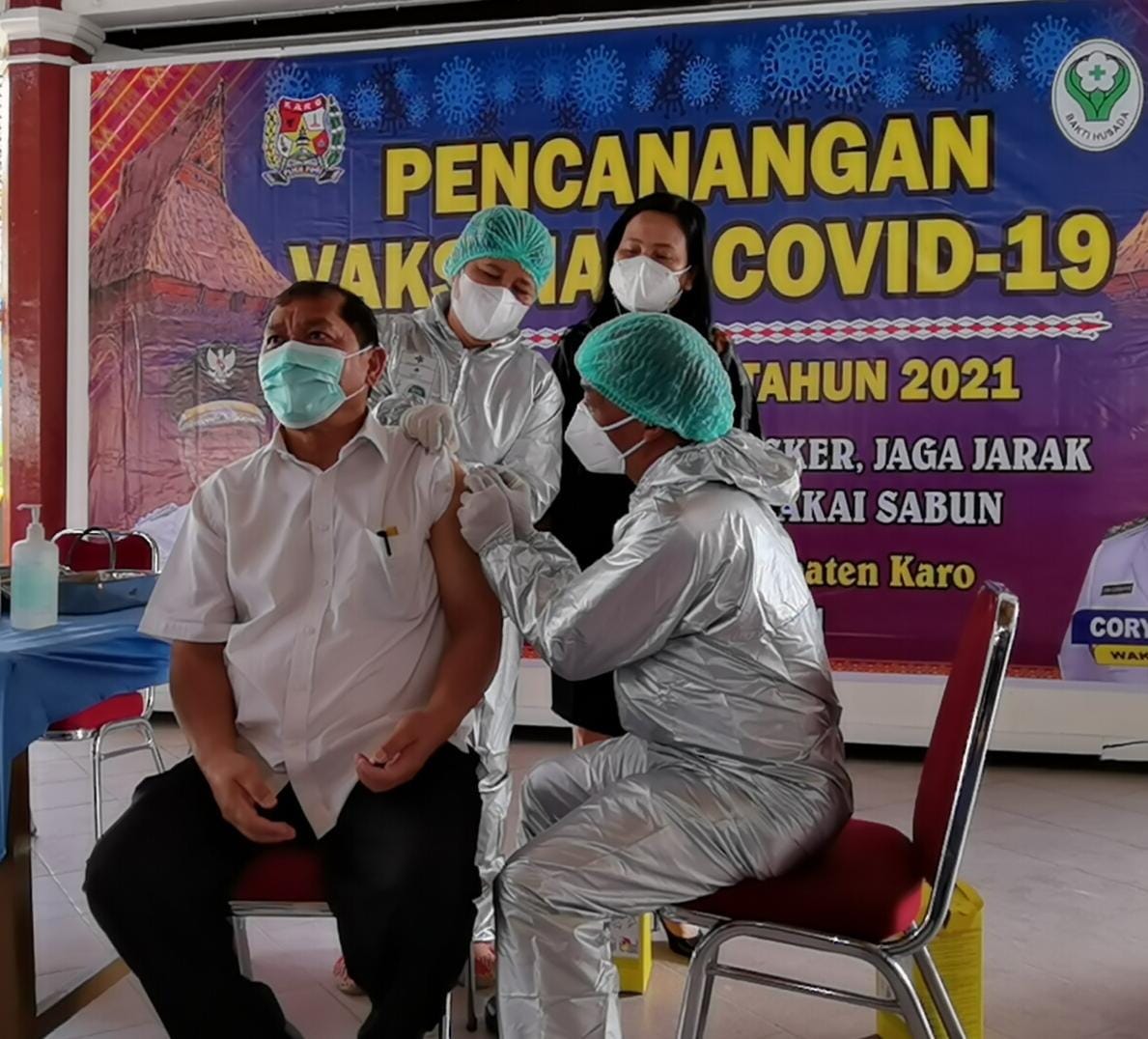 Bupati Karo Terkelin Brahmana SH MH Pertama Divaksin Memutus Penularan Covid-19