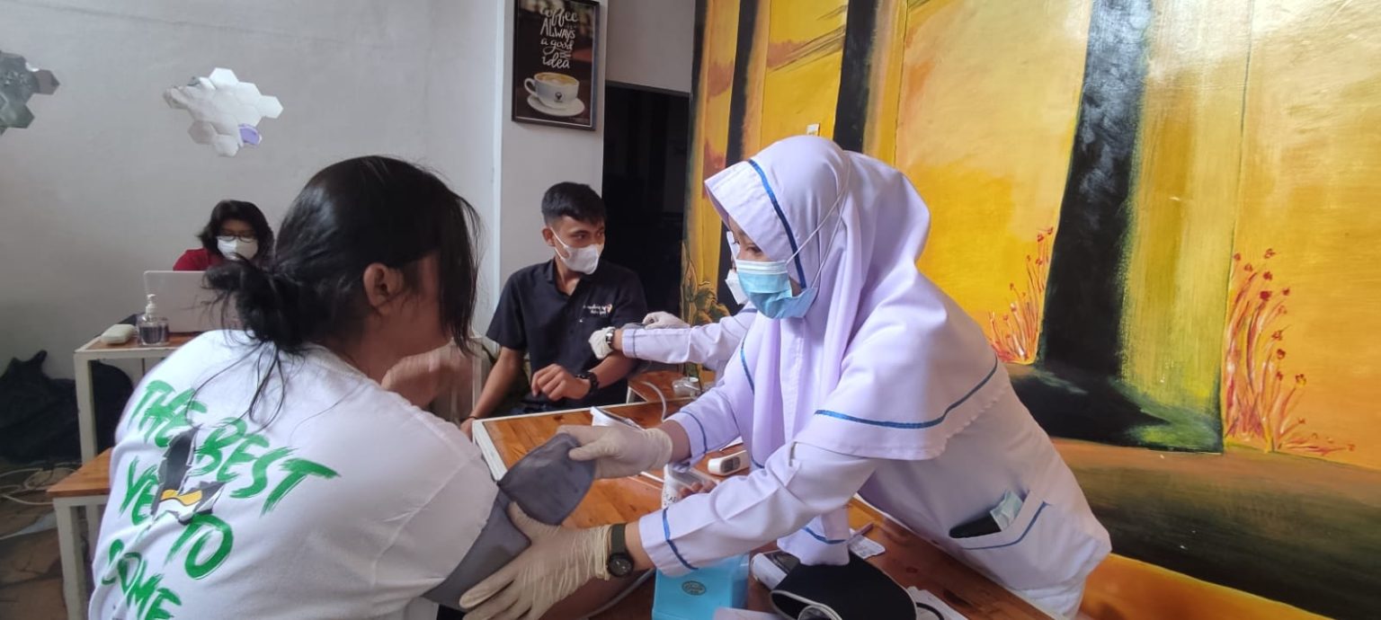MEDAN – Dewan Pimpinan Wilayah (DPW) Partai Solidaritas Indonesia (PSI) Sumatera Utara (Sumut) menggelar vaksinansi massal bagi masyarakat Kota Medan di 14 Cofee, Jalan Armada Medan, Jumat (4/3/2022). Kegiatan tersebut guna mendukung percepatan Program Vaksinasi Nasional.