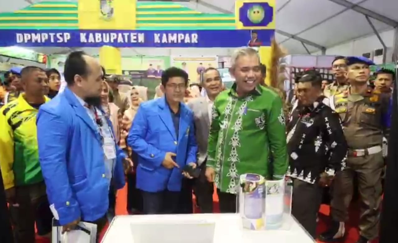 KAMPAR-Bupati Kampar Dr. Kamsol, MM antusias saat berkunjung ke stand Universitas Muhammadiyah Sumatera Utara di ajang Bangkinang Expo 23 yang berlangsung tanggal 23 – 28 Februari 23 di Lapangan Merdeka Bangkinang.