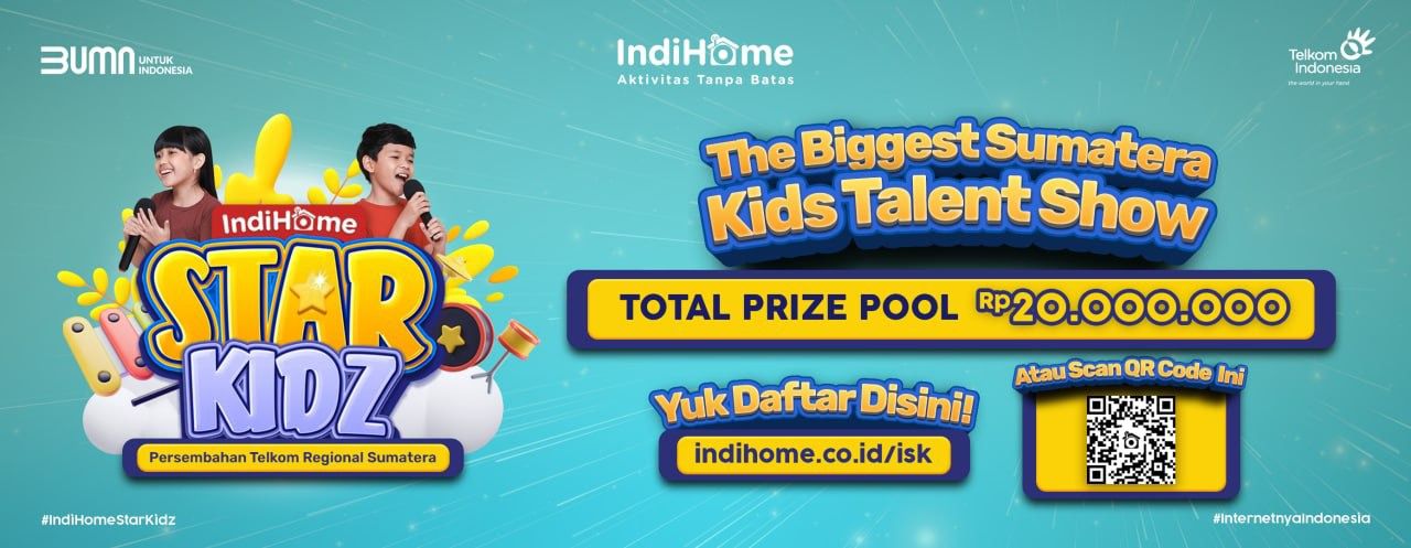 MEDAN – Telkom Indonesia Regional I Sumatera menggelar kompetisi bertajuk IndiHome Star Kidz 2022. Kompetisi unjuk bakat anak untuk memeriahkan peringatan Hari Anak Nasional dan Hari Keluarga Nasional terbuka untuk seluruh insan anak di wilayah Sumatera.