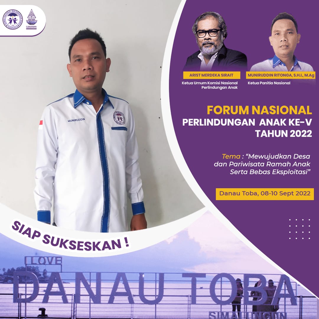 Ketua Panitia Forum Nasional Perlindungan Anak Ke -V Muniruddin Ritonga, Minggu (4/9/2022) dalam realease persnya menyampaikan, Forum Nasional Perlindungan Anak ini digelar di Hotel Madani Medan Kamis 8 September 2022 yang akan dihadiri sekitar 285 Perwakilan Lembaga Perlindungan Anak Provinsi dan Kab/Kota Se Indonesia. “Forum Nasional Perlindungan Anak ke V mengusung thema ‘Mewujudkan Desa dan Pariwisata Ramah Anak dan Bebas Ekploitasi’ dan Insya Allah akan dibuka Menteri Pemberdayaan Perempuan dan Perlindungan Anak Ibu I Gusti Ayu Bintang Darmawati,SE, MSi,” kata Dijelaskannya, kegiatan itu akan digelar mulai pukul 10.00 Wib di Hotel Madani yang dibuka Menteri PPA “Acara ini juga akan memilih Ketua Umum Komisi Nasional Perlindungan Anak untuk Priode 2022 – 2027 dan Membahas AD/ART serta rekomendasi ke Pemerintah terkait perlindungan anak,” jabarnya.