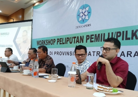 Workshop yang digelar oleh Dewan Pers ini juga menghadirkan narasumber lain seperti perwakilan dari Dewan Pers, KPU Sumut, dan Bawaslu Sumut, dengan moderator Ketua Persatuan Wartawan Indonesia (PWI) Sumut, Farianda Putra Sinik.
